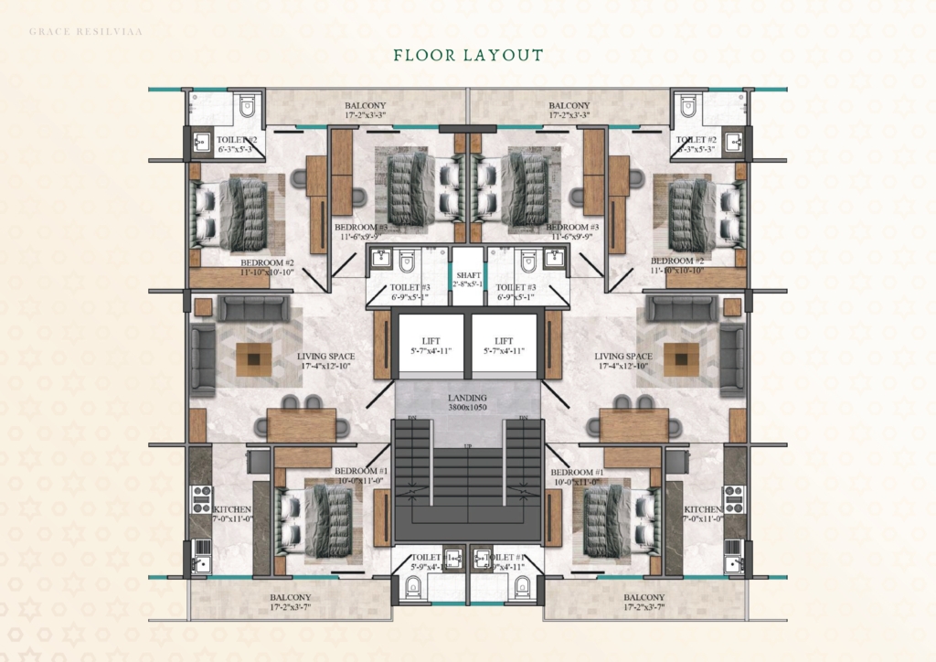 Exclusive 3BHK+3T premium floor-residences with privacy and an independent-living feel.